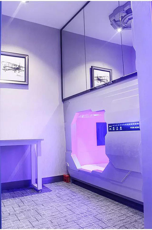 酒店内装修由着名的设计公司设计,从建造到装修,处处体现人性化的设计。酒店设施齐全,高速无线WiFi全面覆盖,畅享极速上网体验,提供24小时热水,免费的洗浴用品,舱内配有等离子换风机,全天候的保持舱内空气质量,让客人拥有一个良好的睡眠环境和睡眠体验。